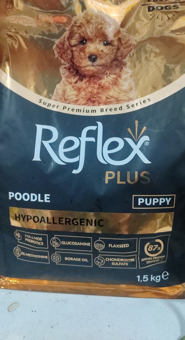 Reflex Plus Poodle yavru köpek maması, eklem sağlığı için glukozamin, keten tohumu, burs otu yağı ve kondroitin sülfat içerir. Hipoalerjeniktir ve %87 hayvansal protein sağlar.