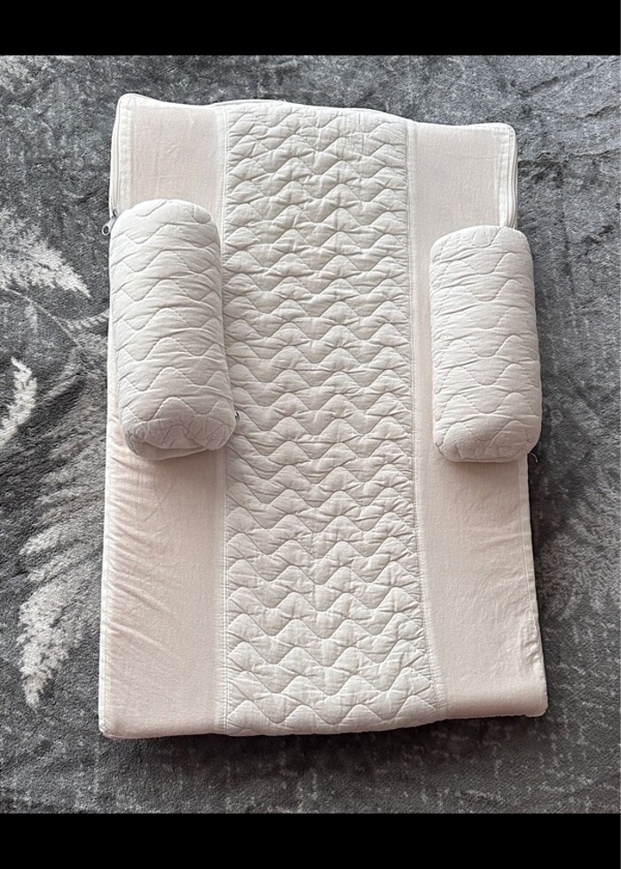 Ortopedik süngerli, yıkanabilir kılıf ve yan kolları takılıp çıkarılabilen bir yatak modeli.
