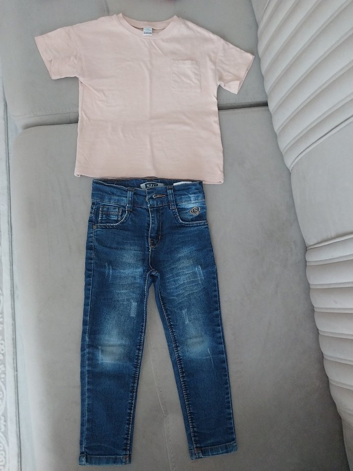 Düz kesim, normal boy erkek denim pantolon. Hafif soluk detaylar ve gündelik kullanıma uygun tişortle birlikte sorunsuz lekesiz defosuz az kullanıldı 3 4 yaş