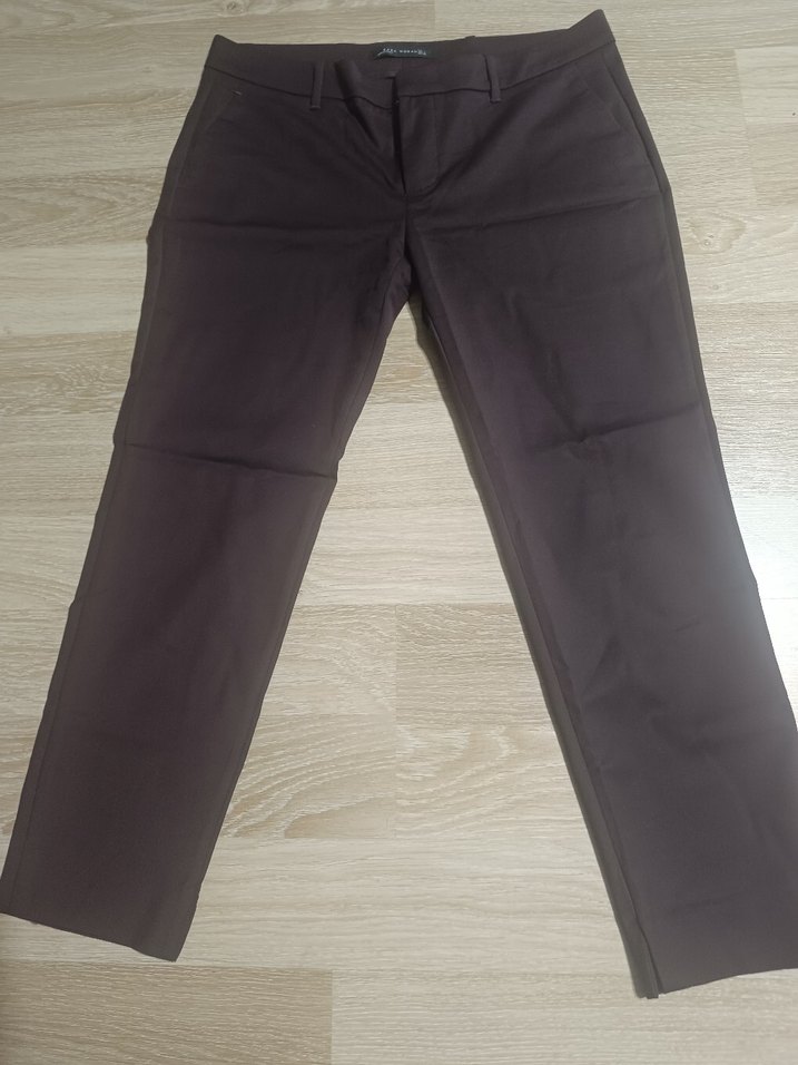 regular fit kumaş pantolon midi boyda, desen içermeyen düz tasarıma sahiptir. Rahat sentetik kumaştan üretilmiş, ofis için şık ve rahat bir görünüm sunar. zara orjinal