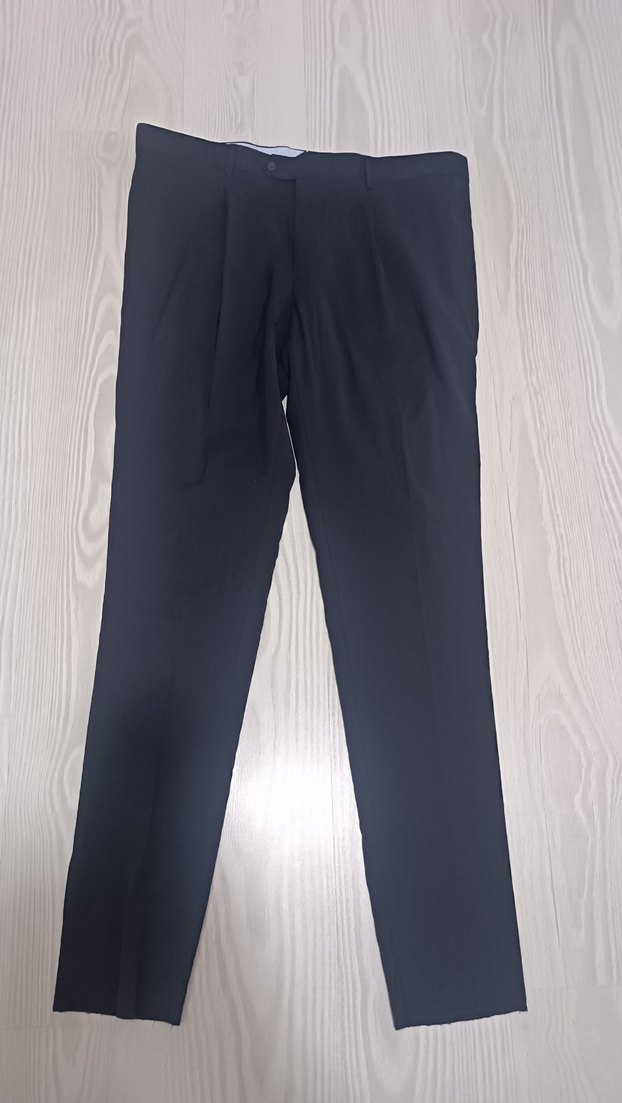 Düzenli kesim, pileli ve normal boyda erkek pantolon.cok kaliteli kumaştan üretilmiş, desensiz ve ofis ortamına uygun koyu siyah renkte. orijinal vakko hiç kullanılmadı paçası yapılmadı eni 52 boyu 117 cm