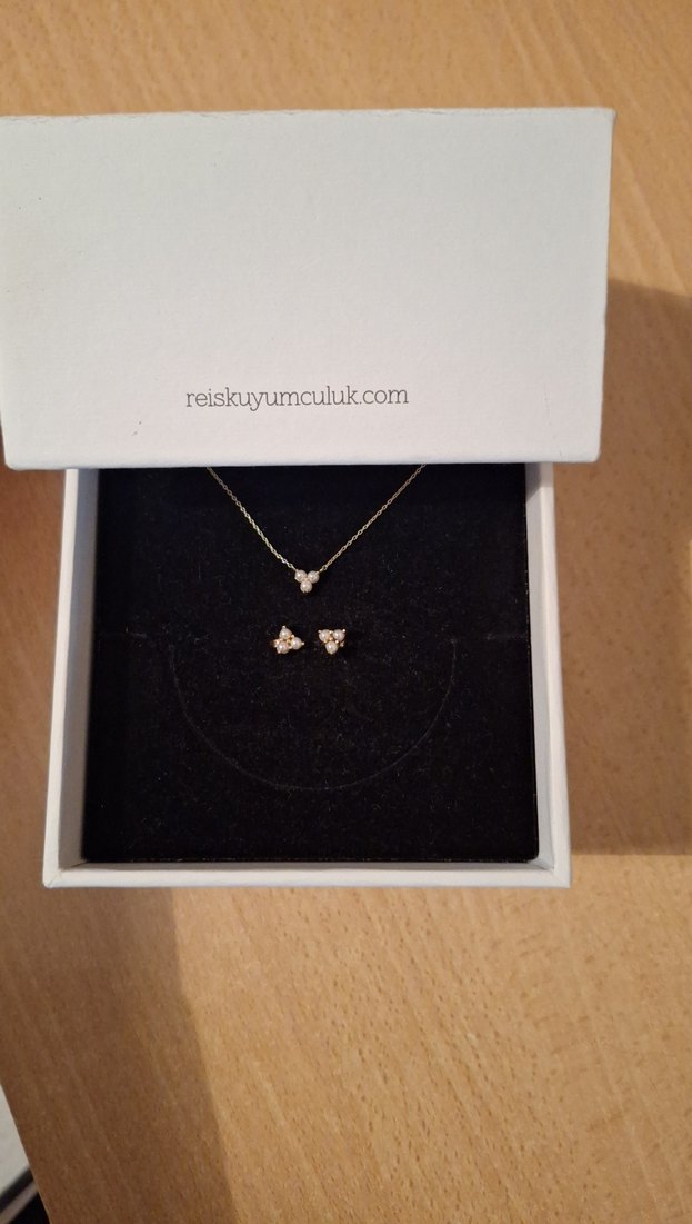şu an sitesinde kolye 14.000 Tl. küpe 8000 TL. kutusuyla gelecektir. altin renk. 1 2 kez kullanildi. hicbir defosu yok. ayri ayri da satabilirim. kupe 7.000 kolye 13.000