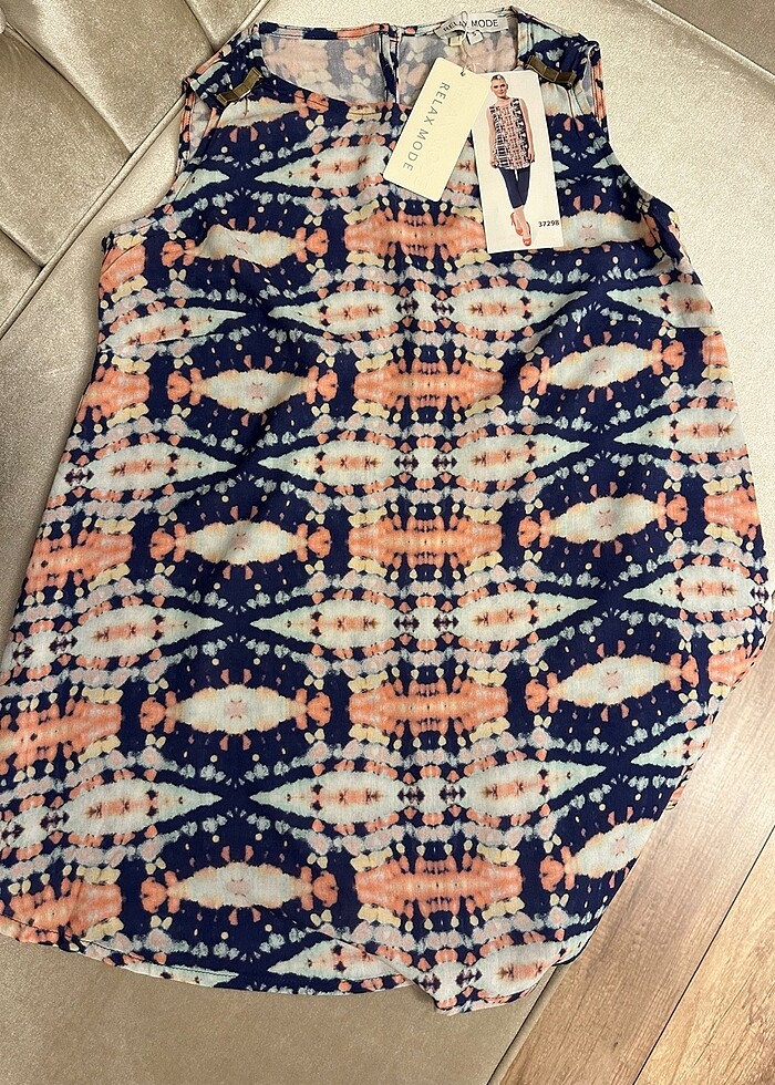 Etiketli sadece bluz. Gebelere de uygun serin yazlık güzel bir kumaşı var. Omuzlarda metal kelebek aksesuarı var. Biraz kararmış yıkanınca geçer