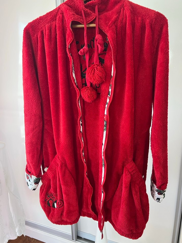 Relax mode markayı bilenler kalitesini bilir Uzun kollu, bol kesim canlı kırmızı renkte ve renkli nakışlarla. Cepleri ve süslü ponponlarıyla rahat, az kullanıldı