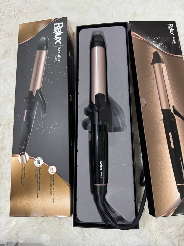 ReluX Keratin saç maşası, keratin bakımı ile saç şekillendirme için bej varil ve koyu renk tutacak ile tasarlanmıştır. Hediye geldiği için satıyorum. Garantili faturalı kontrol amaçlı bakmak için açtım