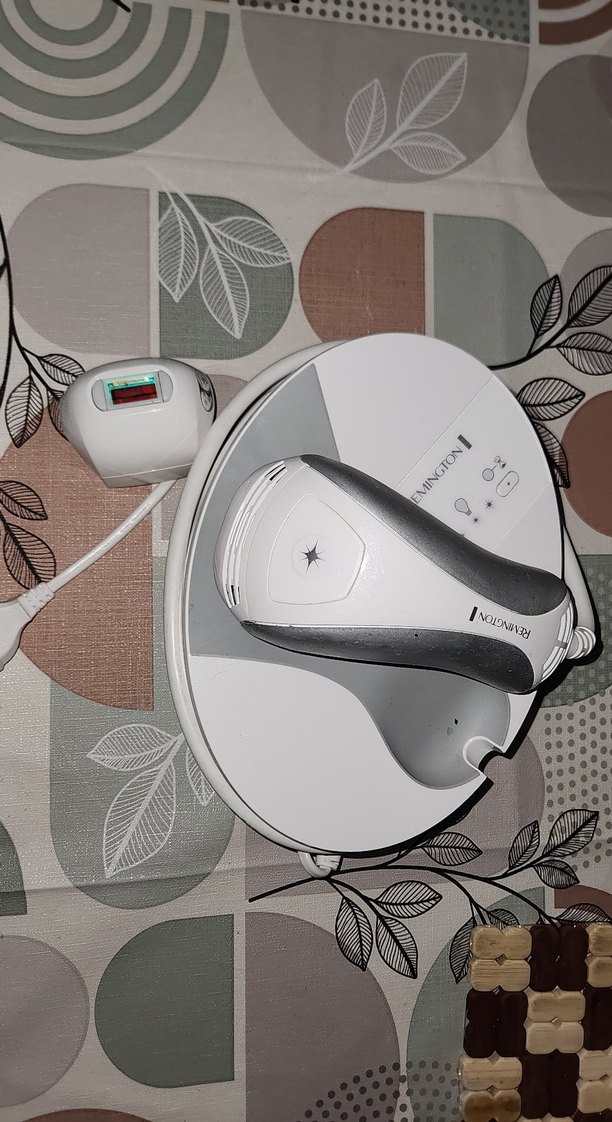 Remington beyaz ve gri renkte lazer epilasyon cihazı, kullanımı kolay tutma birimi ve tabana sahiptir. Etkili tüy alma sağlar. ✨ az kullanıldı ve iyi durumda tutma yerinde hafif yapışkanlık var çıkartmaya çalıştım ancak çıkmıyor bundan dolayı uyguna vericem