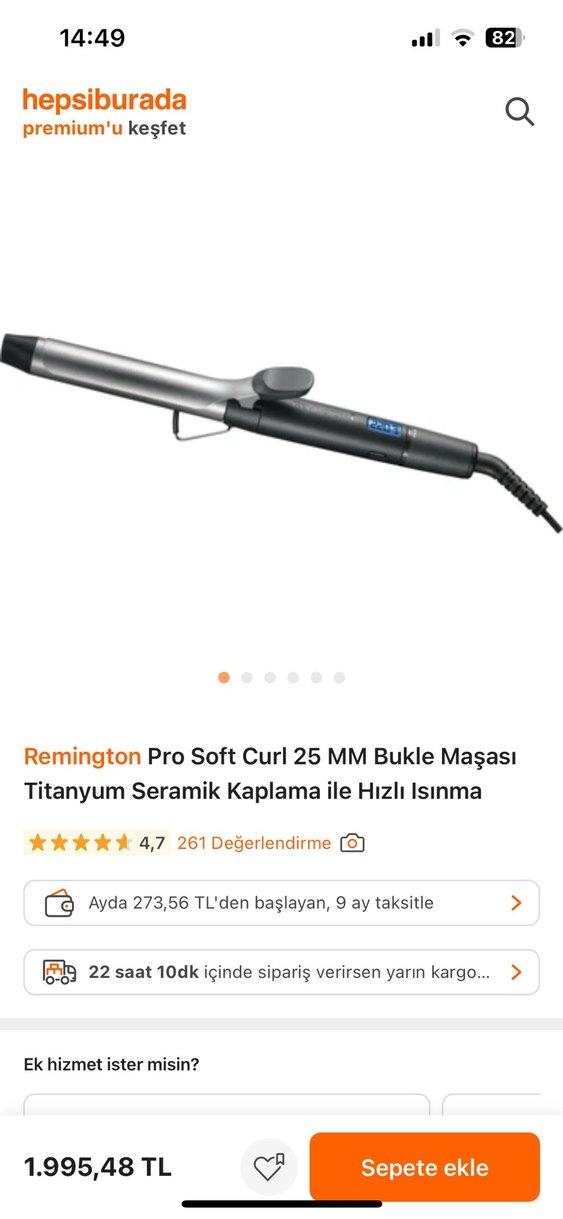 Remington Pro Soft Curl bukle maşası, 25 mm çapında titanyum seramik kaplama ile hızlı ısınır ve etkili bukleler oluşturur. Gri renktedir. Taşındığım için kutuyu bulamıyorum bulursam koyacağım ürünü hiç kullanmadım bir heves aldım üşendim öyle makyaj masamda kaldı