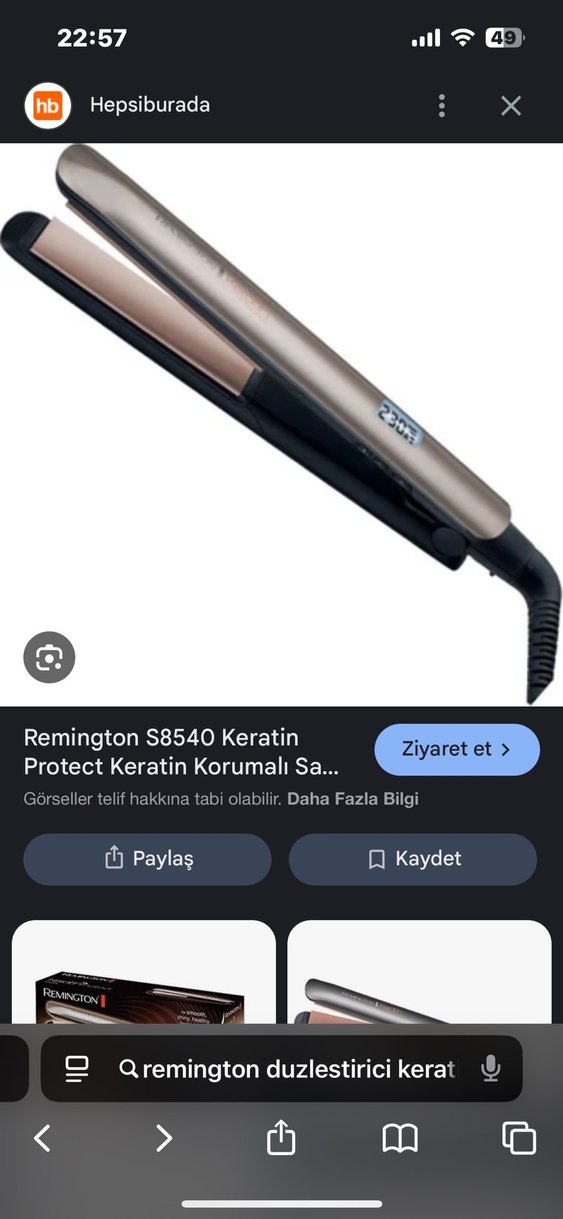 Remington S8540 saç düzleştirici, keratin korumalı ve parlak bej plakalarıyla saçları düzleştirir ve korur. Etkili saç bakımı ve şekillendirme sağlar. ✨