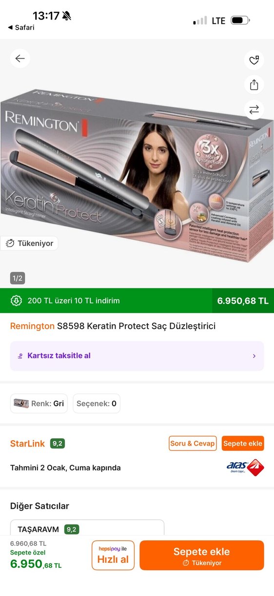 Remington S8598 Keratin Protect saç düzleştirici, keratinle zenginleştirilmiş seramik plakaları ve akıllı ısı kontrolü ile saçları koruyarak düzleştirir. Parlak ve pürüzsüz sonuçlar sağlar. Sıfırdan farksız bir kez kullandım sadece 1 kez. 2023 yılında almıştım teknosadan.