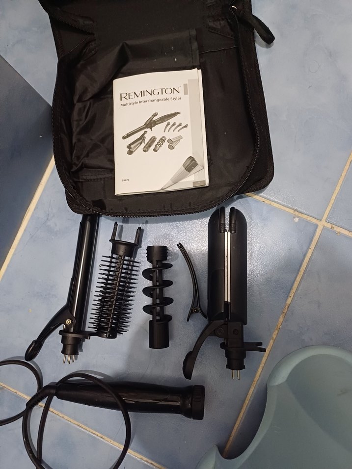 Remington siyah saç şekillendirici set, farklı saç şekillendirme başlıkları ve taşıma çantası ile birlikte gelir. Saçları düzleştirmek, kıvırmak ve hacim vermek için uygundur. ♀️