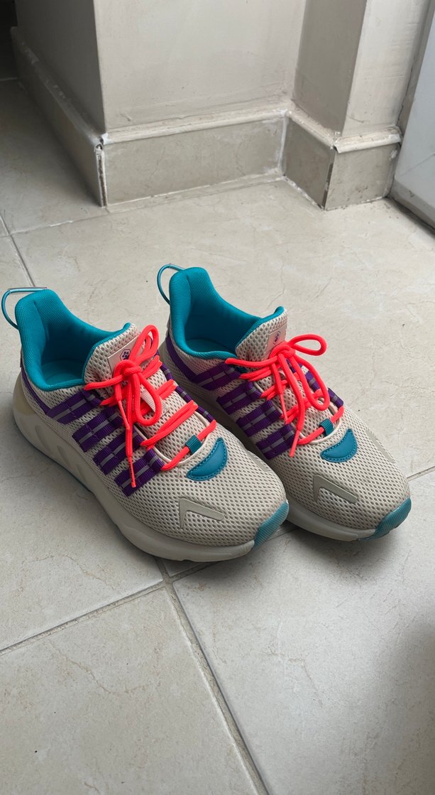 Nefes alabilir file üst yüzey ve sağlam kauçuk tabana sahip, bağcıklı renkli kadın spor ayakkabısı. Hafızalı tabandır. Sadece 2 kere kullandım. Sıfır ayarındadır.