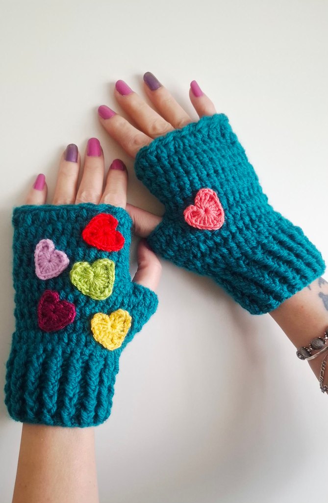 Rengarenk Kalplii Petrol Yeşili El Örgüsü Eldiven