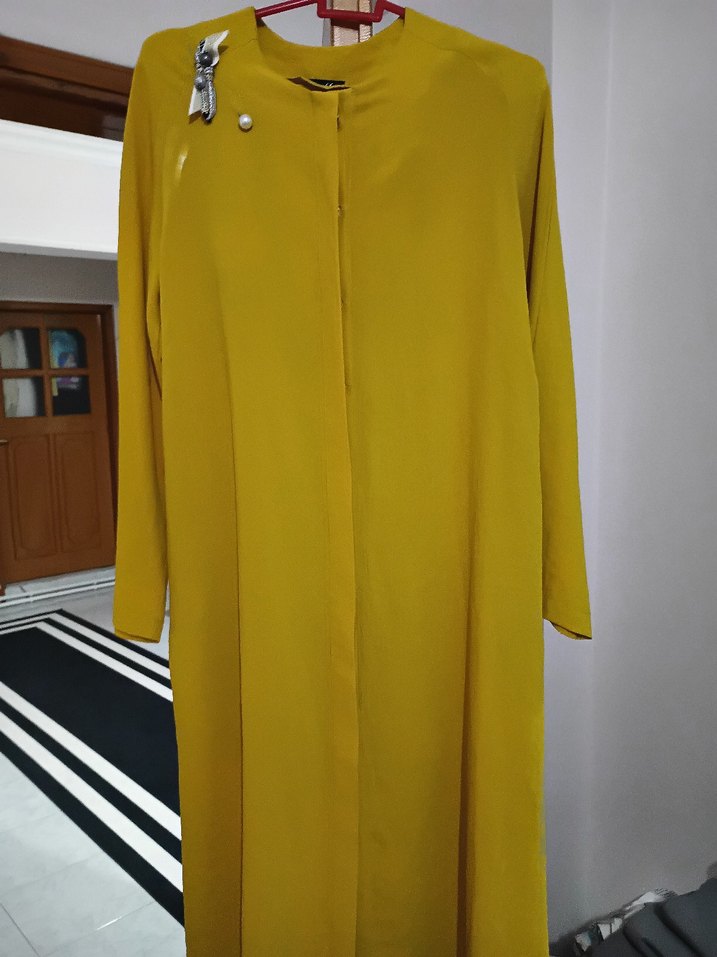Sarı, uzun kollu, pantolon tunik takim Bursa'nın ünlü bir butiğinin ürünüdür bir kere giyildi bı iki saat yeni gibi bı sorunu yok