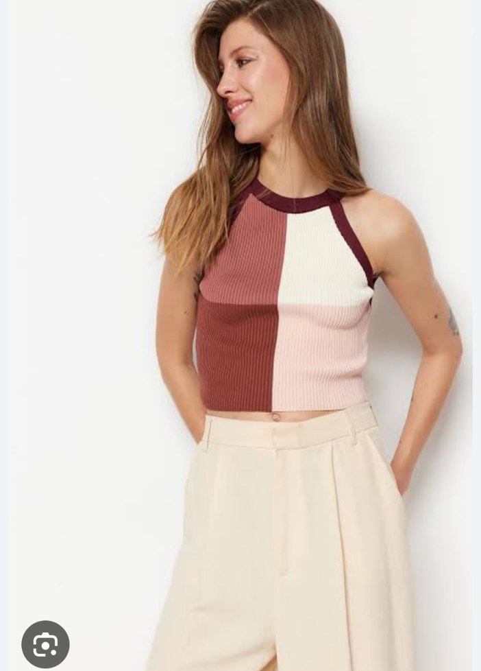 Renk Bloklu Kolsuz Crop Top