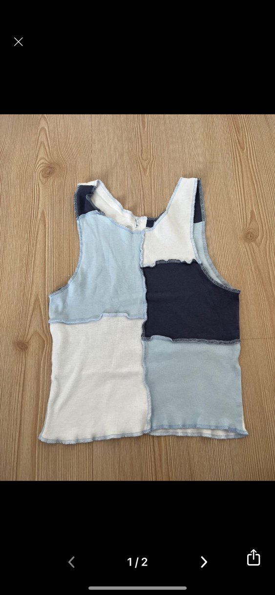 Denim kumaştan, pastel mavi tonlarda, renk bloklu, askısız ve kolu olmayan, vücuda oturan kadın atlet. Günlük kullanım için uygundur, rahat ve şık bir sokak stili sunar.
