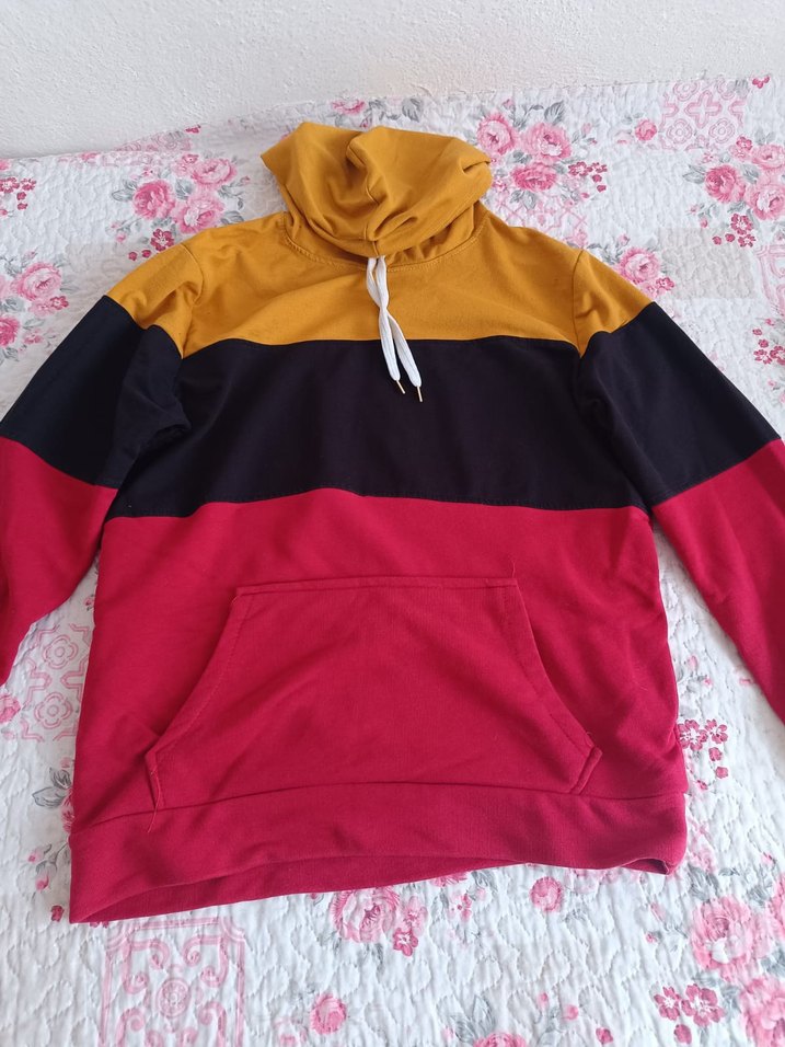 Bol kesim erkek sweatshirt, yüksek yakalı ve uzun kolludur. Yumuşak polar kumaştan yapılmıştır. Koyu renk bloklu tasarımı ve ön cebine sahiptir.