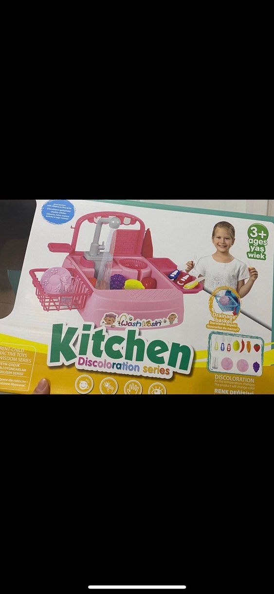3 yaş ve üzeri çocuklar için renk değiştiren öğeler ve çeşitli mutfak gereçleri içeren pembe mutfak oyuncak seti.