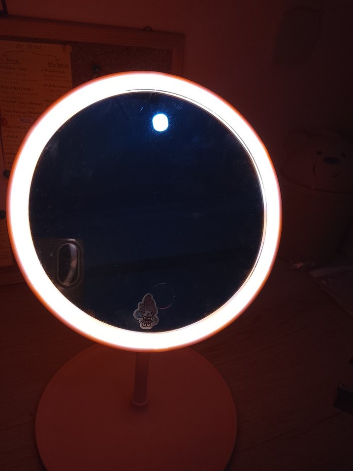 Bej renkli, ışıklı yuvarlak makyaj aynası, net yansıma sağlar. Sağlam tabanı ile dengelidir. Detaylı bakım için uygundur.