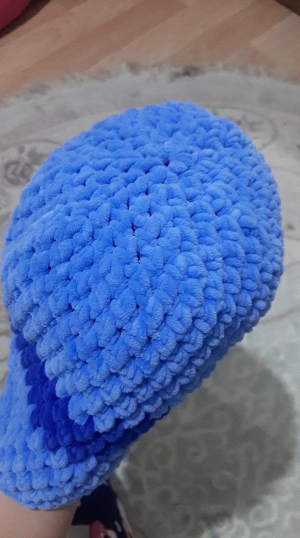 yumuşak ipten örülmüş sapka mavi renk