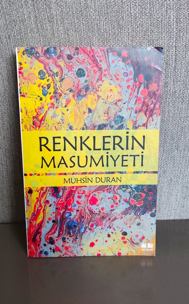 Muhsin Duran'ın 'Renklerin Masumiyeti' adlı sanat kitabı, canlı soyut kapak tasarımıyla renk ve masumiyet temalarını işliyor.