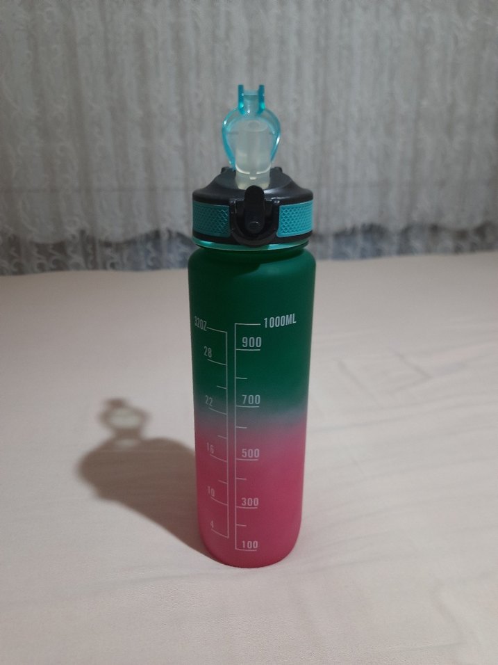 Renkli, 1000 ml kapasiteli, 100-1000 ml arası ölçü işaretlerine sahip. Geniş ağızlı ve pembe-yeşil degrade renkte. 1000 ml kapasiteye sahip, renkli ve ölçü işaretleri bulunan suluk.