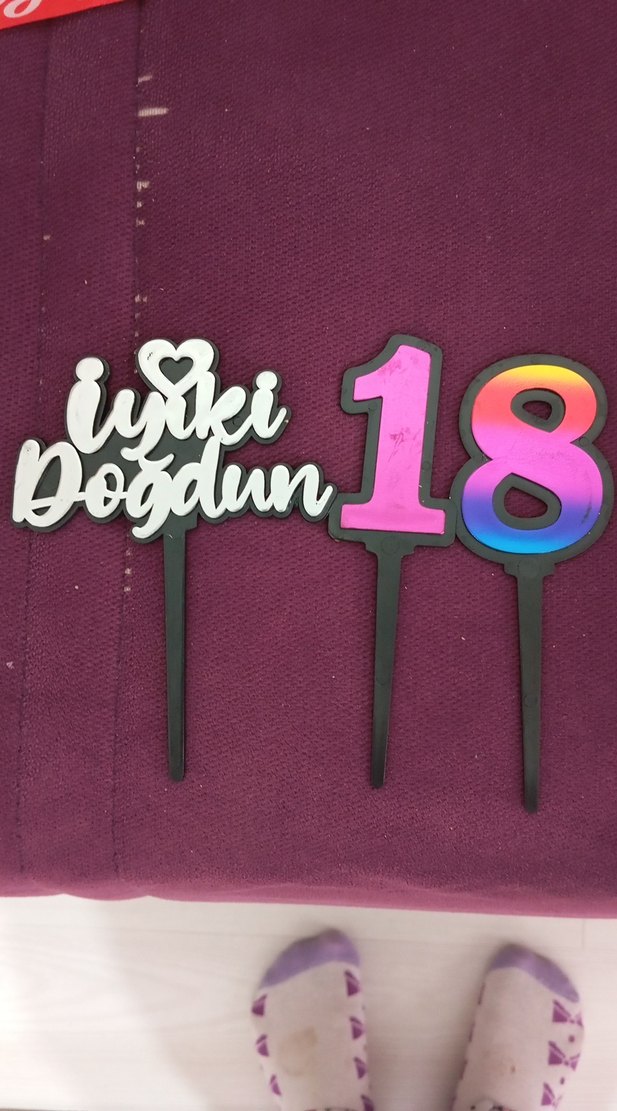 Renkli 'İyi ki Doğdun' yazılı ve 18 sayılı pasta süsü, doğum günü kutlamalarına uygun