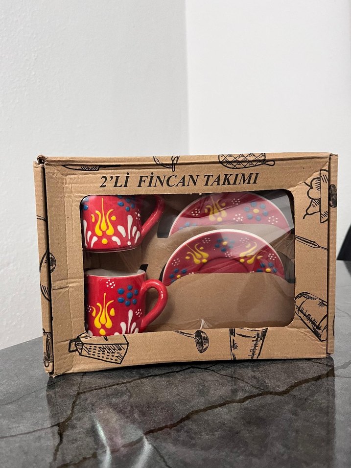 Renkli 2'li Kırmızı Fincan Takımı