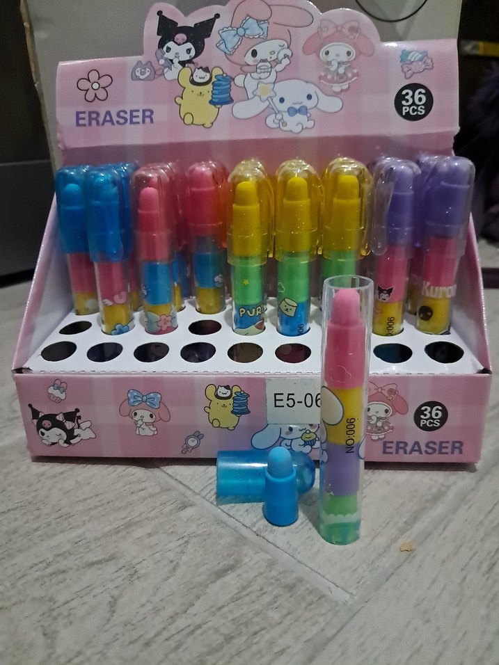 36 parçadan oluşan, renkli ve dudak şeklinde sevimli çizgi film desenli silgi seti. Her silgi canlı renklere sahip ve kolay tutulur.