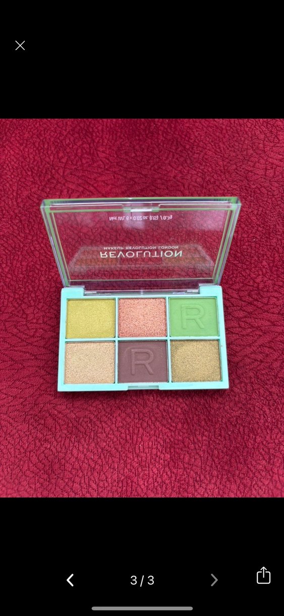 Altı canlı renkten oluşan göz farı paleti, mat ve ışıltılı dokular sunar. Yeşil, sarı, şeftali, kahverengi ve altın tonları içerir.