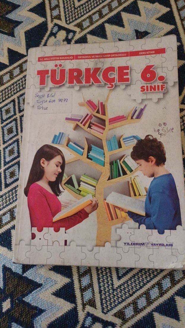 Renkli ve çok parçalı 6. sınıf Türkçe ders kitabı kapaklı puzzle, öğrenci figürleri ve kitap ağacı tasarımı içerir.
