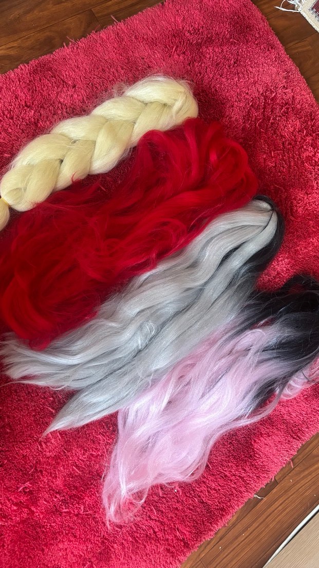 Yün ve tüylü detaylı, bohem ve retro tarzda renkli kadın saç aksesuarları. İstediğiniz rengi yorumda belirtiniz Saçlar uzundur gri ve pembe çift renklidir.