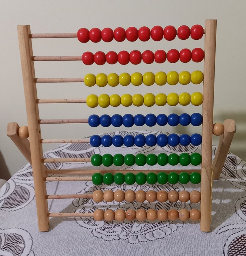 Renkli ahşap boncuklardan oluşan bu abaküs, sayma ve temel matematik becerileri için uygundur. Kırmızı, sarı, mavi, yeşil ve doğal ahşap renkleri içerir.