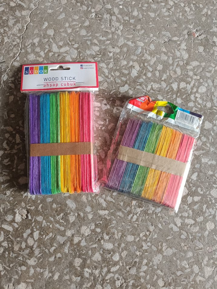 Çeşitli parlak renklerde ahşap çubuklar, hobi ve el işi projeleri için uygun. sıfır ürünlerdir küçük 65 tl büyük 80 TL