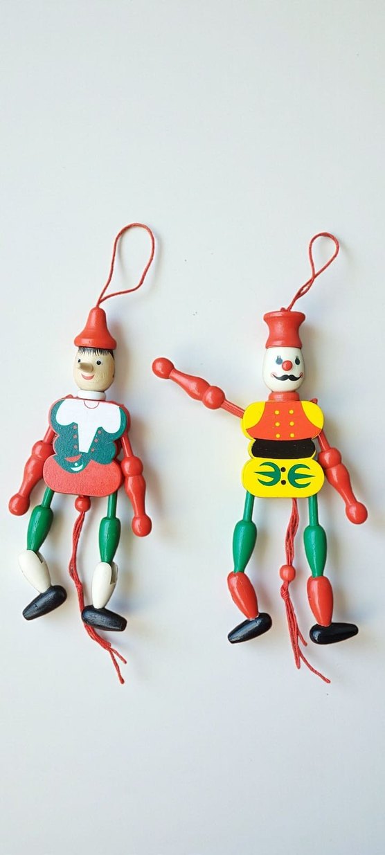 İp ile hareket ettirilen renkli ahşap çekmeli oyuncaklar, canlı kıyafetli sevimli figürlerden oluşur.