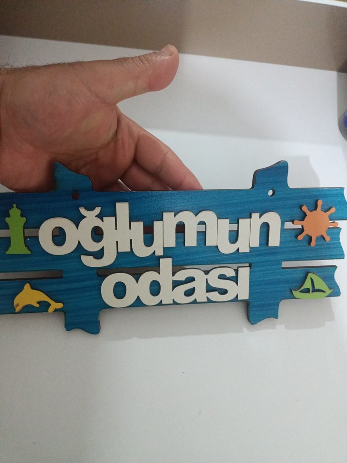 Renkli Ahşap Oğlumun Odası Kapı Süsü