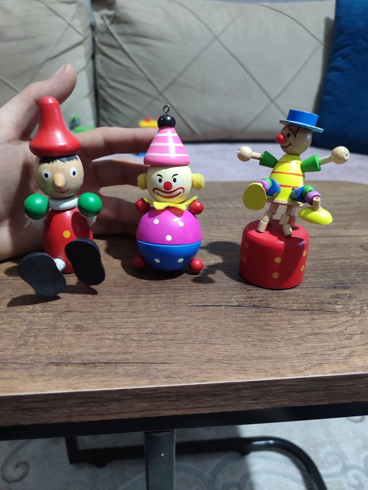 Hareketli parçalı, çok renkli tasarıma sahip renkli ahşap palyaço oyuncaklarıdır. Her koleksiyona neşeli bir hava katar.