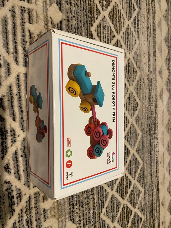 3 yaş ve üzeri çocuklar için renkli ahşap robotik tren. Yaratıcılığı ve motor becerileri destekler.