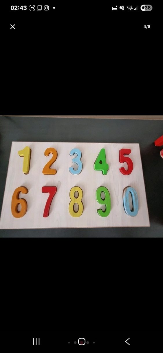 Yıpranmaları var ama kullanıma engel değil fiyat o sebep ile düşük . Bakmadan almayın . Renkli ahşap sayılar içeren eğitici oyuncak, 0'dan 9'a kadar rakamları öğrenmeye yardımcı olur. 12345 ve 67890 sayıları bulunur.