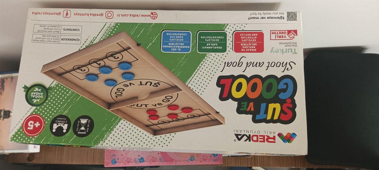 Renkli ahşap oyun tahtası, el-göz koordinasyonu ve konsantrasyon gerektirir. Kırmızı ve mavi taşlarla stratejik oyun imkanı sunar. taşlardan biri eksik ama oynmaya engel değil.bir kaç kez oynandı