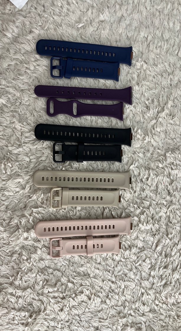 Mor, lacivert, siyah, bej ve pembe renklerde koyu tonlu akıllı bileklik kayışları yer alıyor. Adet fiyatıdır.