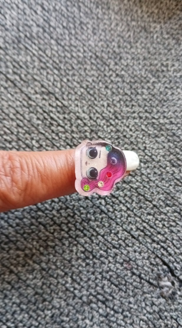 Sevimli figür şeklinde, içinde parlak taşlar bulunan renkli lisans lı kız çocuk yüzük LoL bebek animasyon temalı