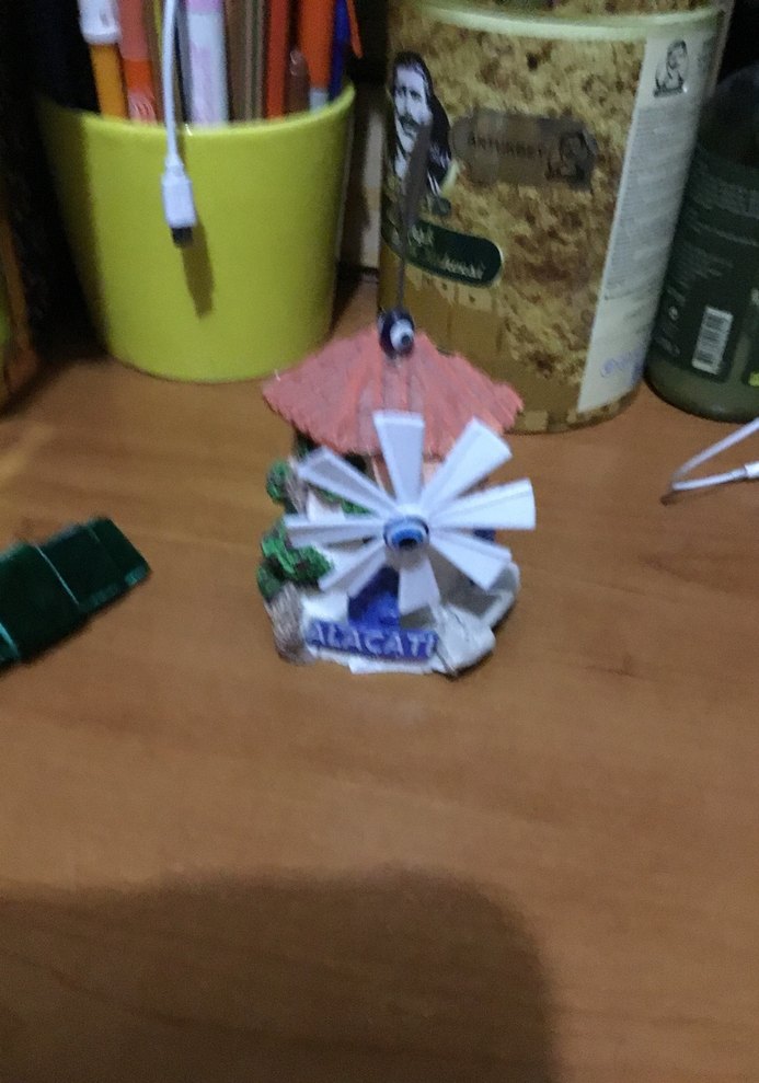 "ALACATI" yazılı, çok renkli ve detaylı çatılı yel değirmeni şeklinde biblo.