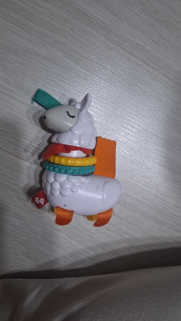 Renkli alpaka şeklinde diş kaşıyıcı, yumuşak kurdeleler ve dokulu halkalar içerir. Hafif ve kolay tutulur.