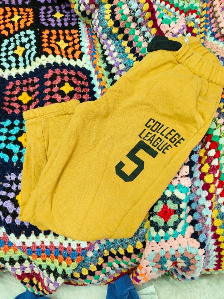 Yumuşak ve sıcak hissettiren sarı tonlarda, renkli batik desenli çocuk eşofman Rahat ve canlı bir kullanım sağlar. ️