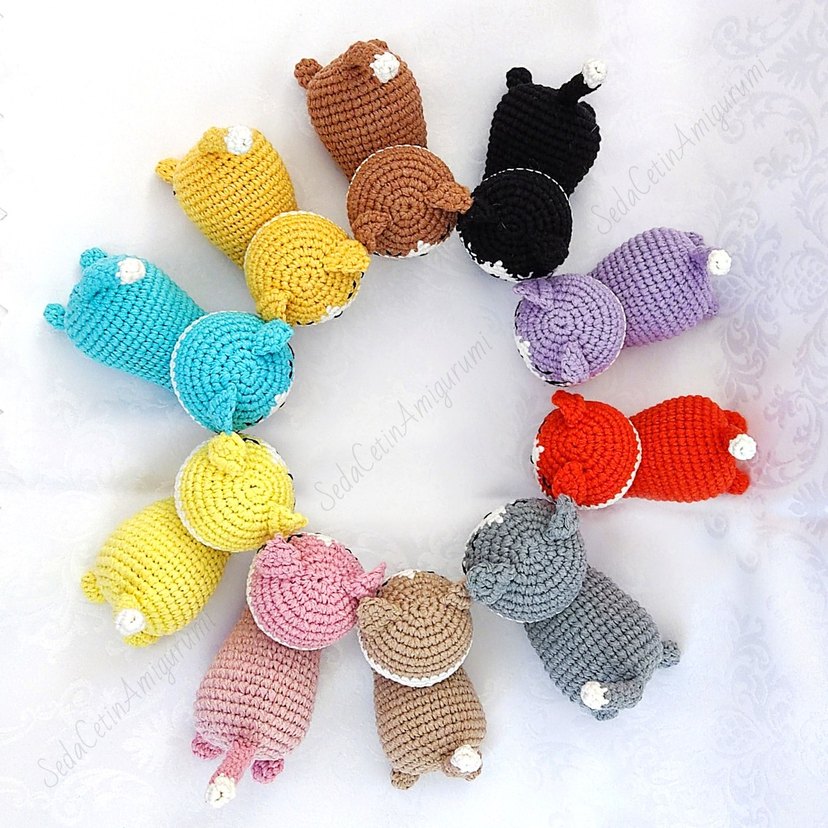 Renkli Amigurumi Uykucu Kedi Örgü Oyuncaklar
