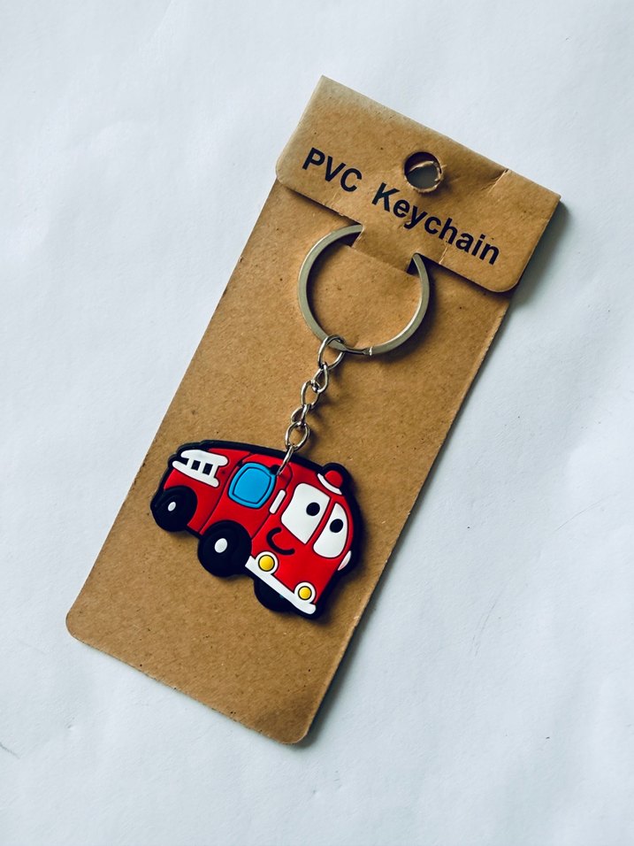 kırmızı itfaiye aracı figürlü kadın anahtarlık. Bohem, hippie, retro ve minimalist tarzlara uygundur.