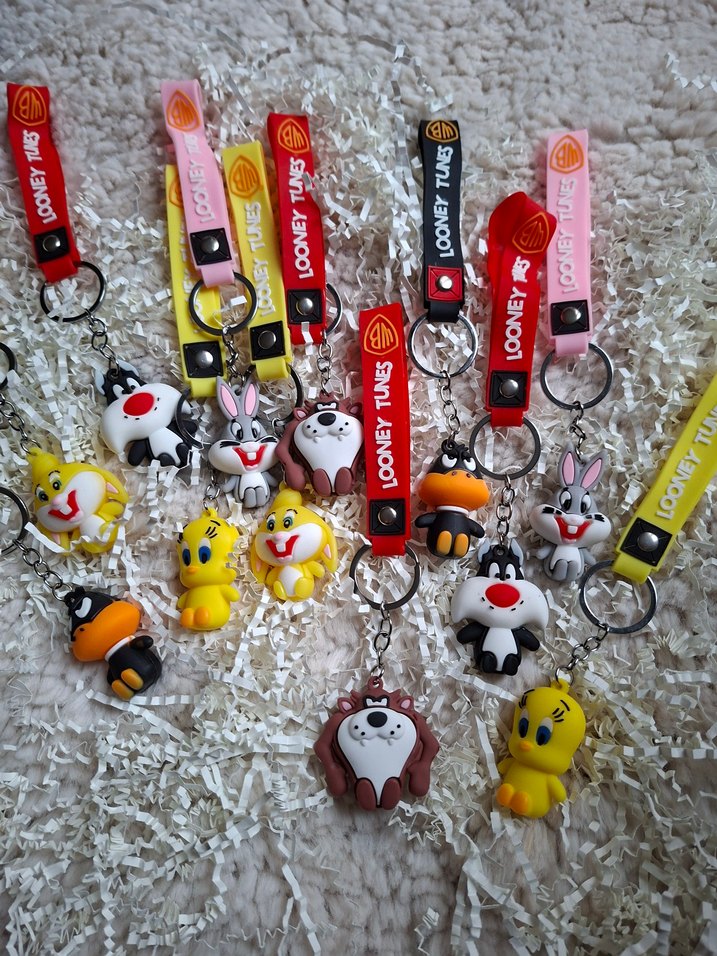 Popüler çizgi film karakterli, renkli Looney Tunes anahtarlıklar, canlı renkli kayışlarla. Anahtarlarınıza eğlenceli bir dokunuş katar.