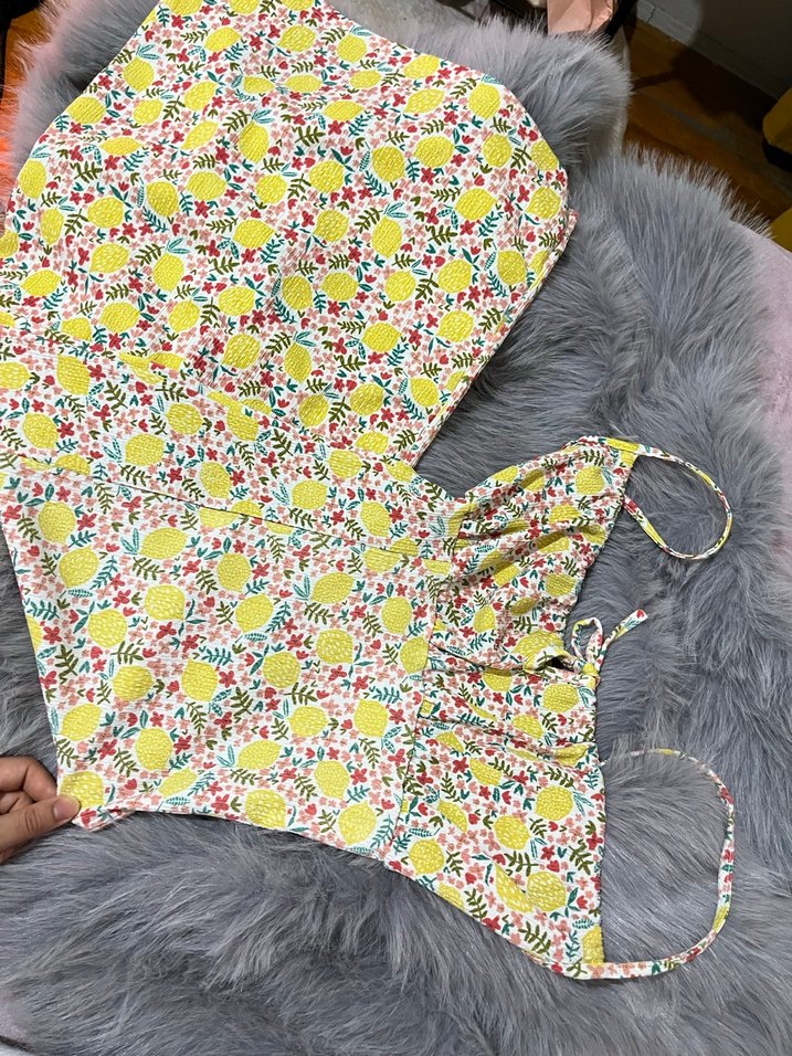 Renkli ananas desenli bağcıklı elbise ayarlanabilir askılarlacanlılık katar.