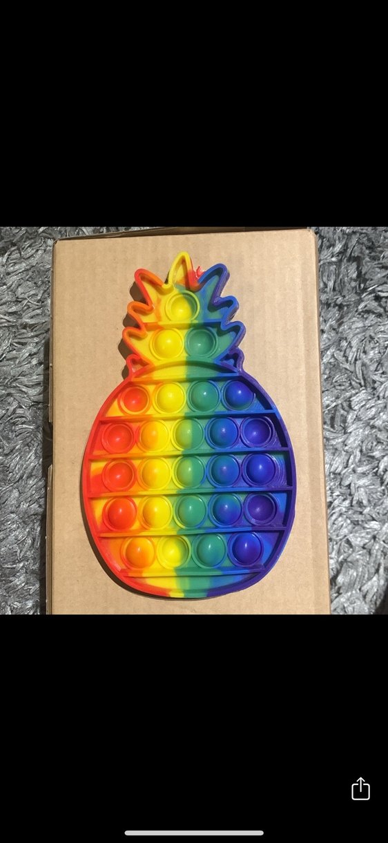 Renkli ananas şeklinde, yumuşak malzemeden yapılmış, kabarcık patlatma özellikli duyusal oyun ve stres azaltıcı oyuncak.