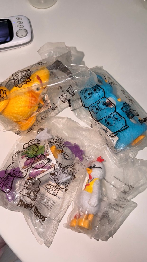 Orijinal ambalajında çeşitli Angry Birds karakterlerini içeren renkli figür seti.